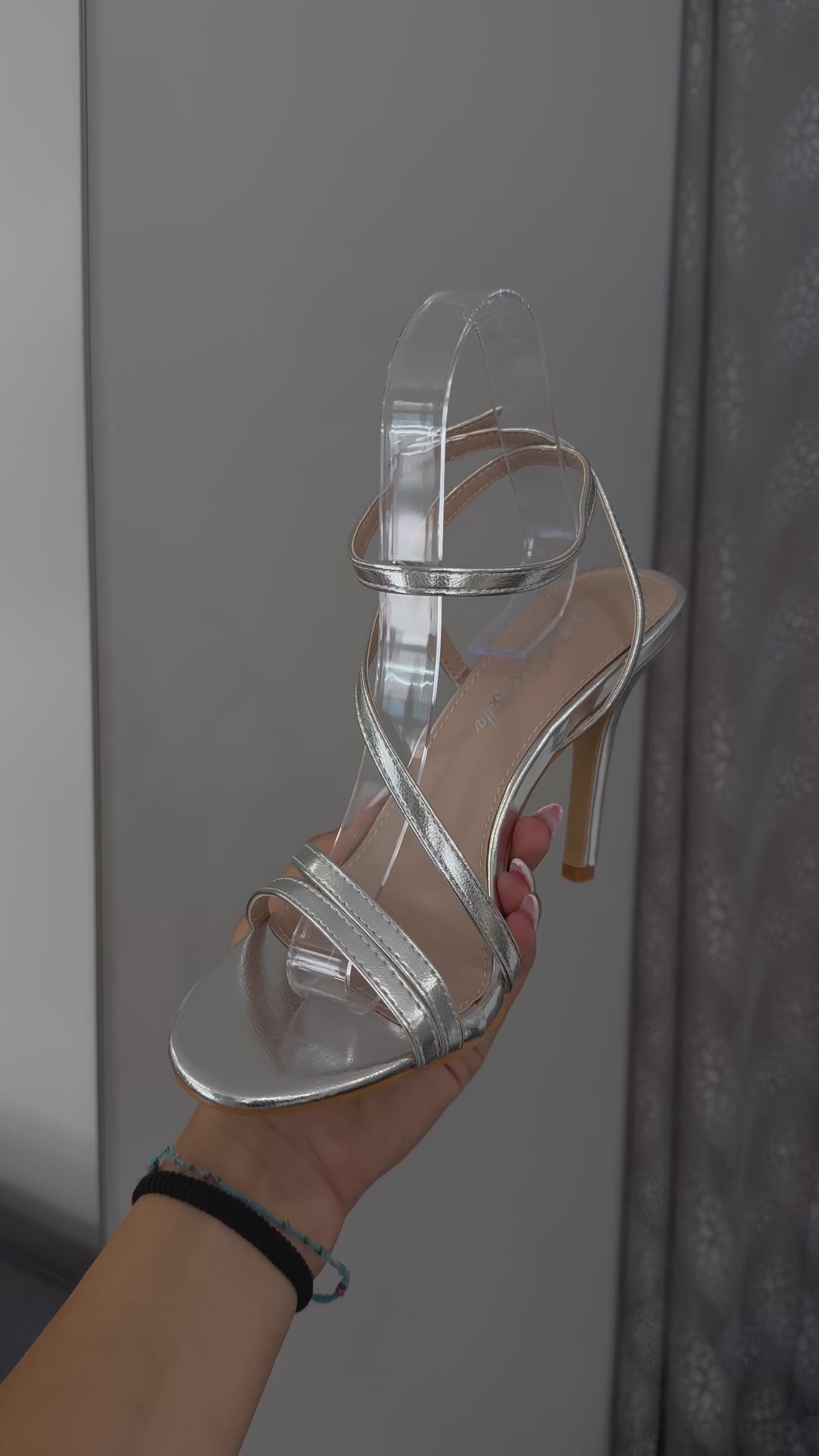 metallic silver sandals