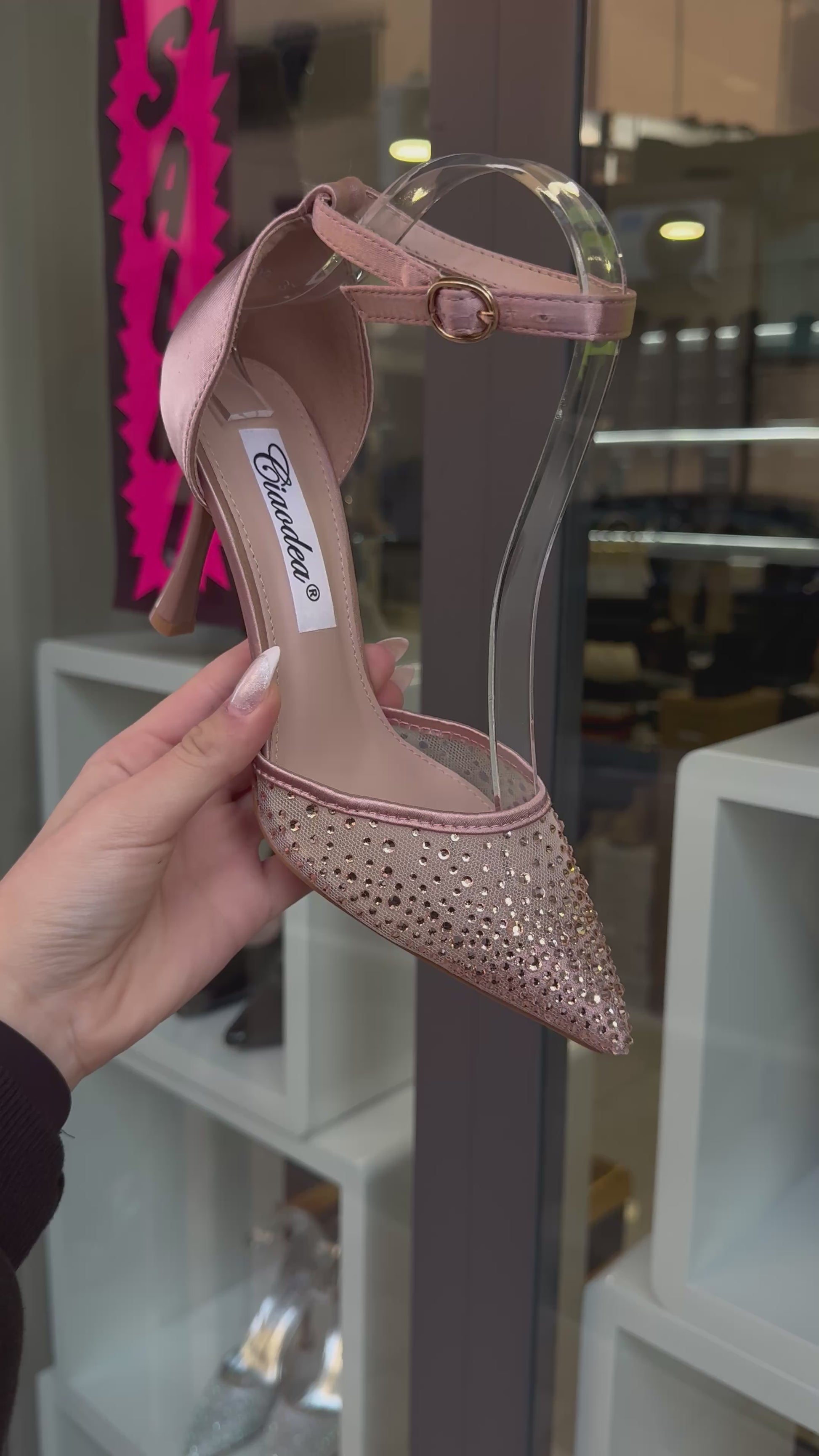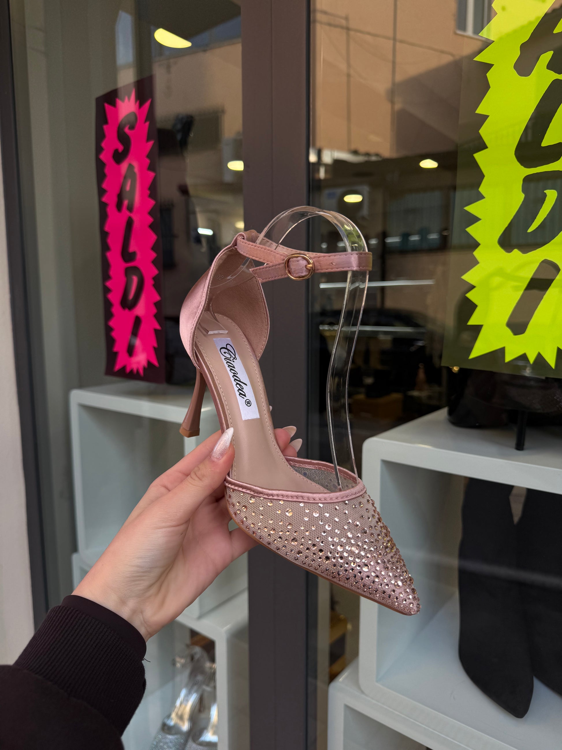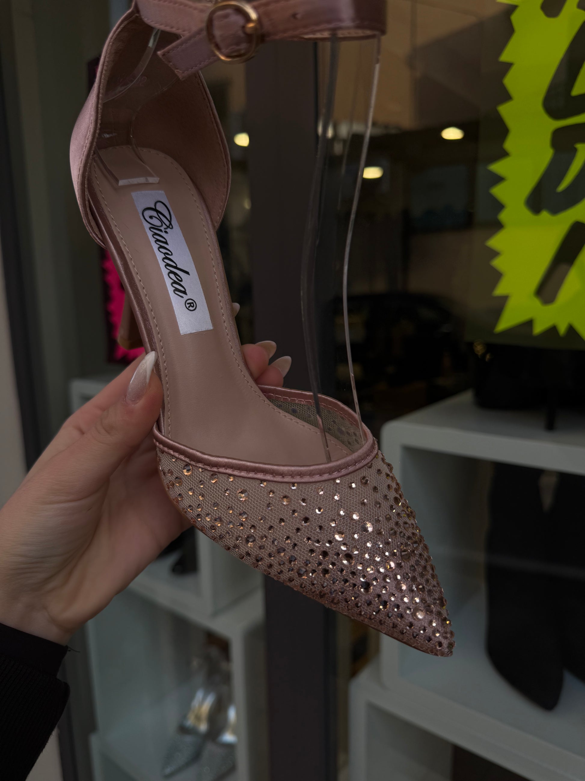 punta semitrasparente con swarovski a cascata