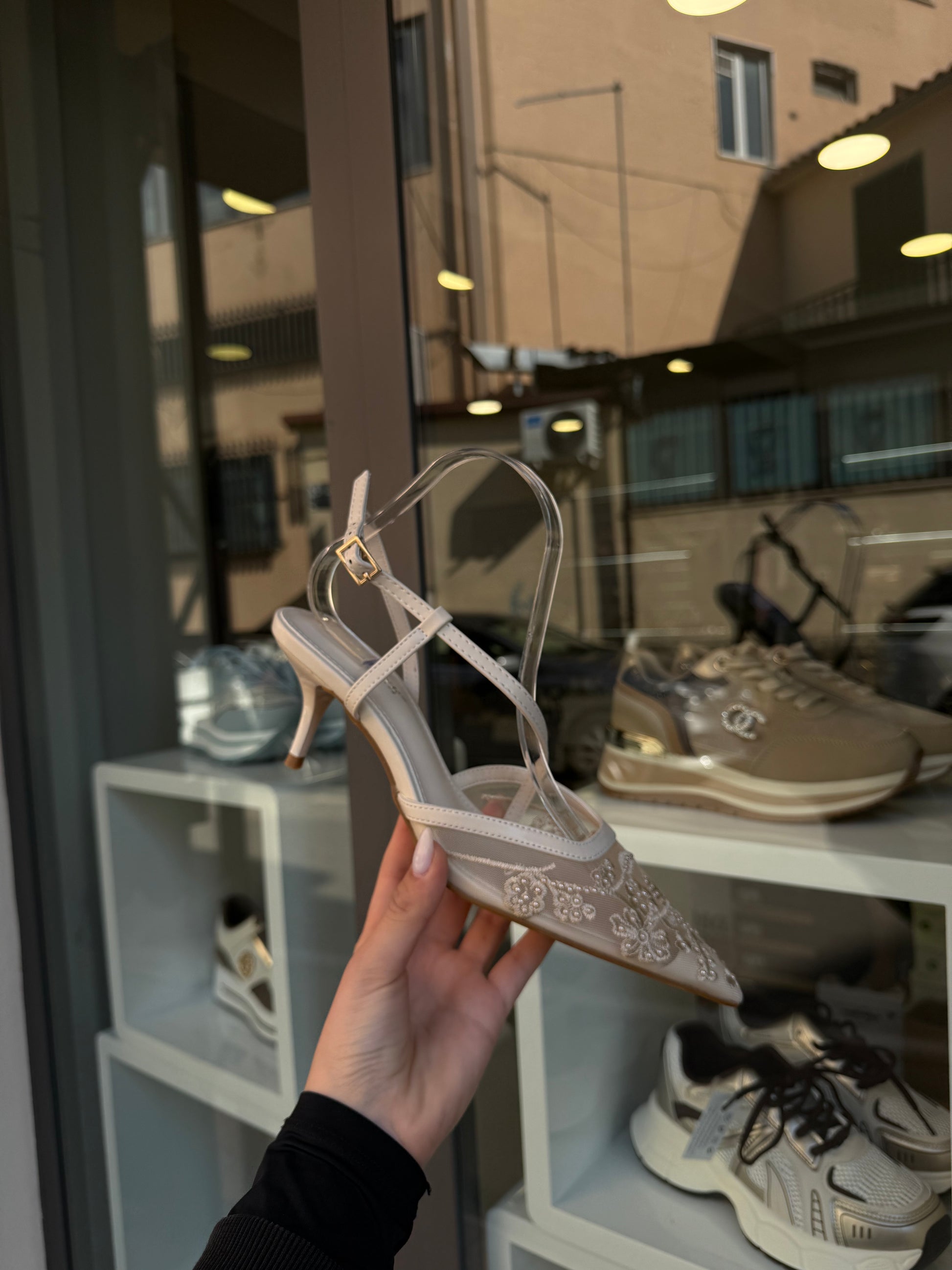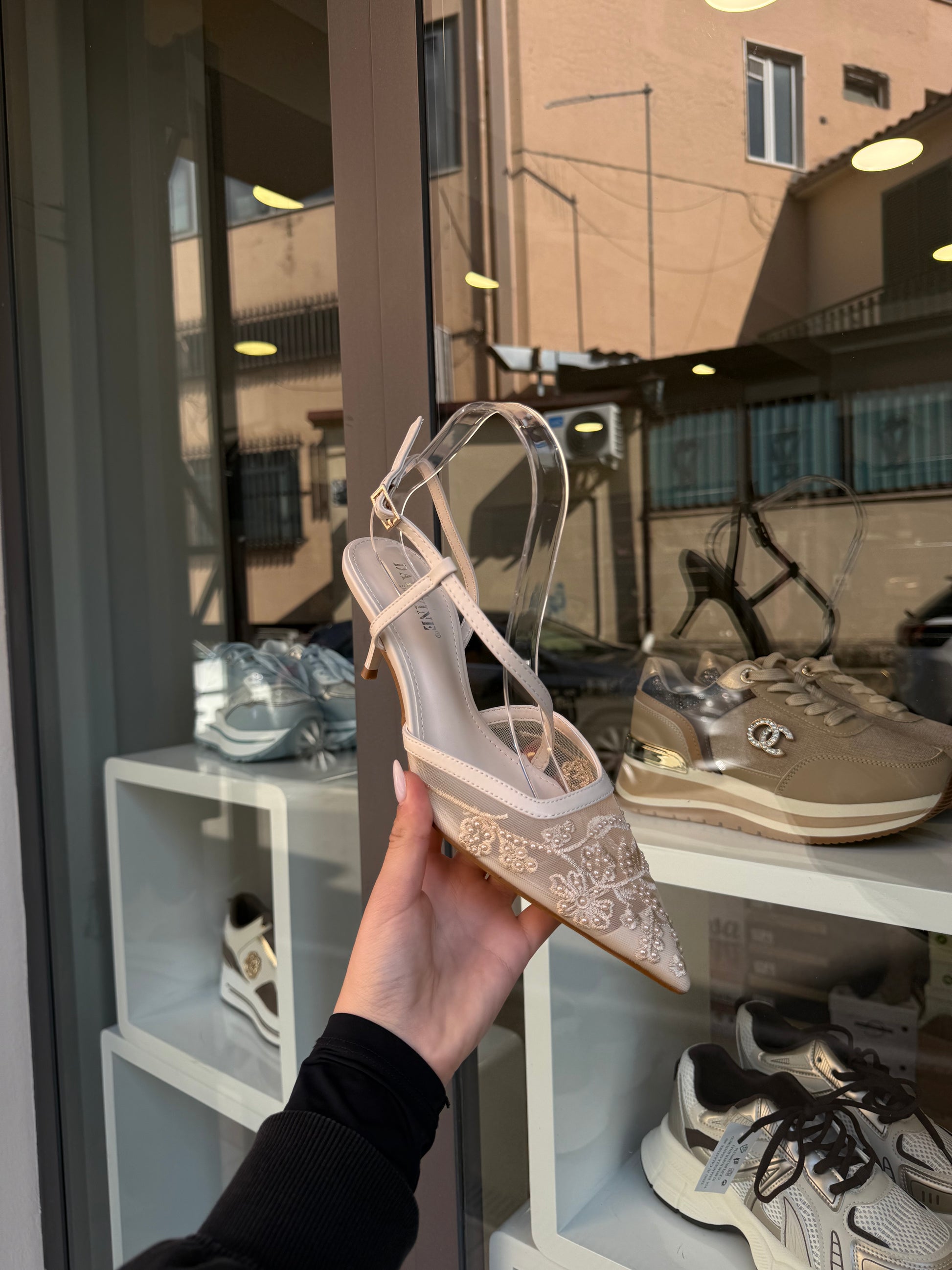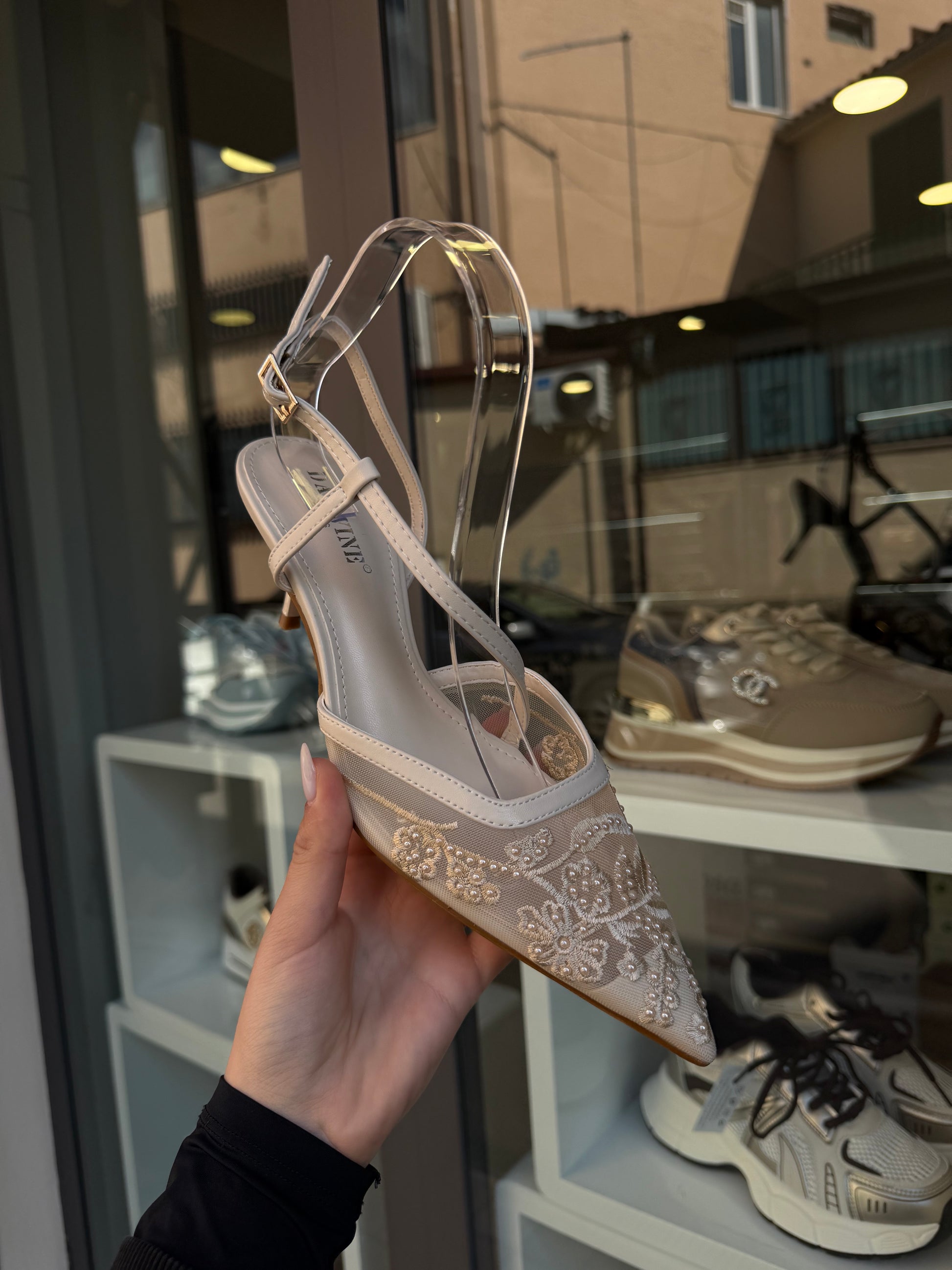decolleté con perle color burro