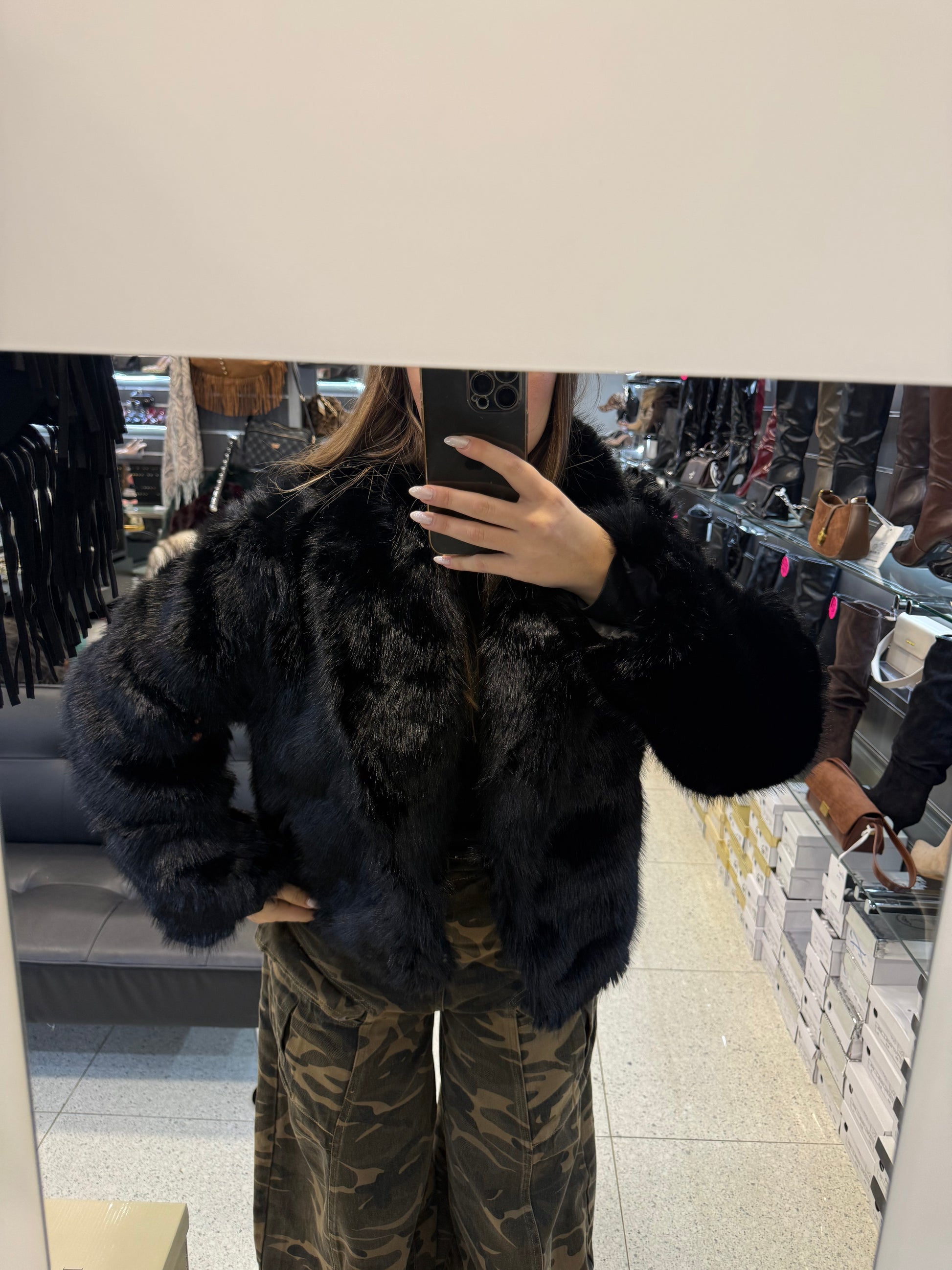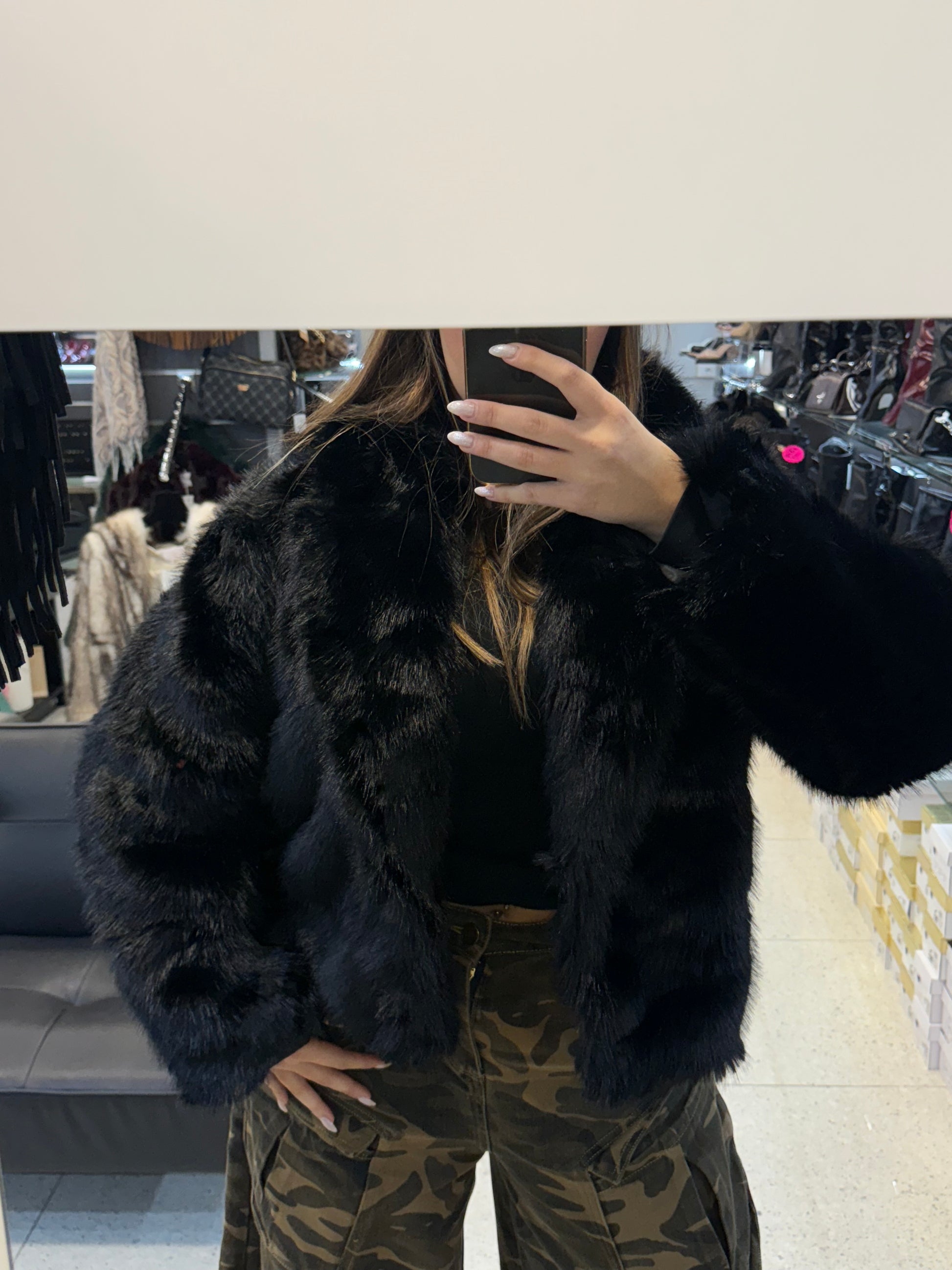 pelliccia nera senza cappuccio