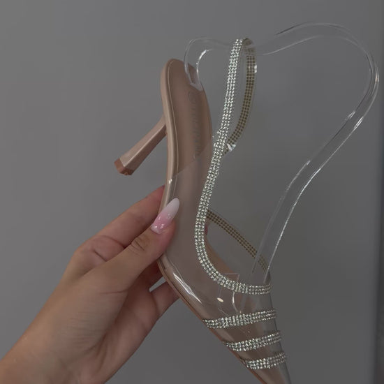 slingback trasparenti con strisce swarovski