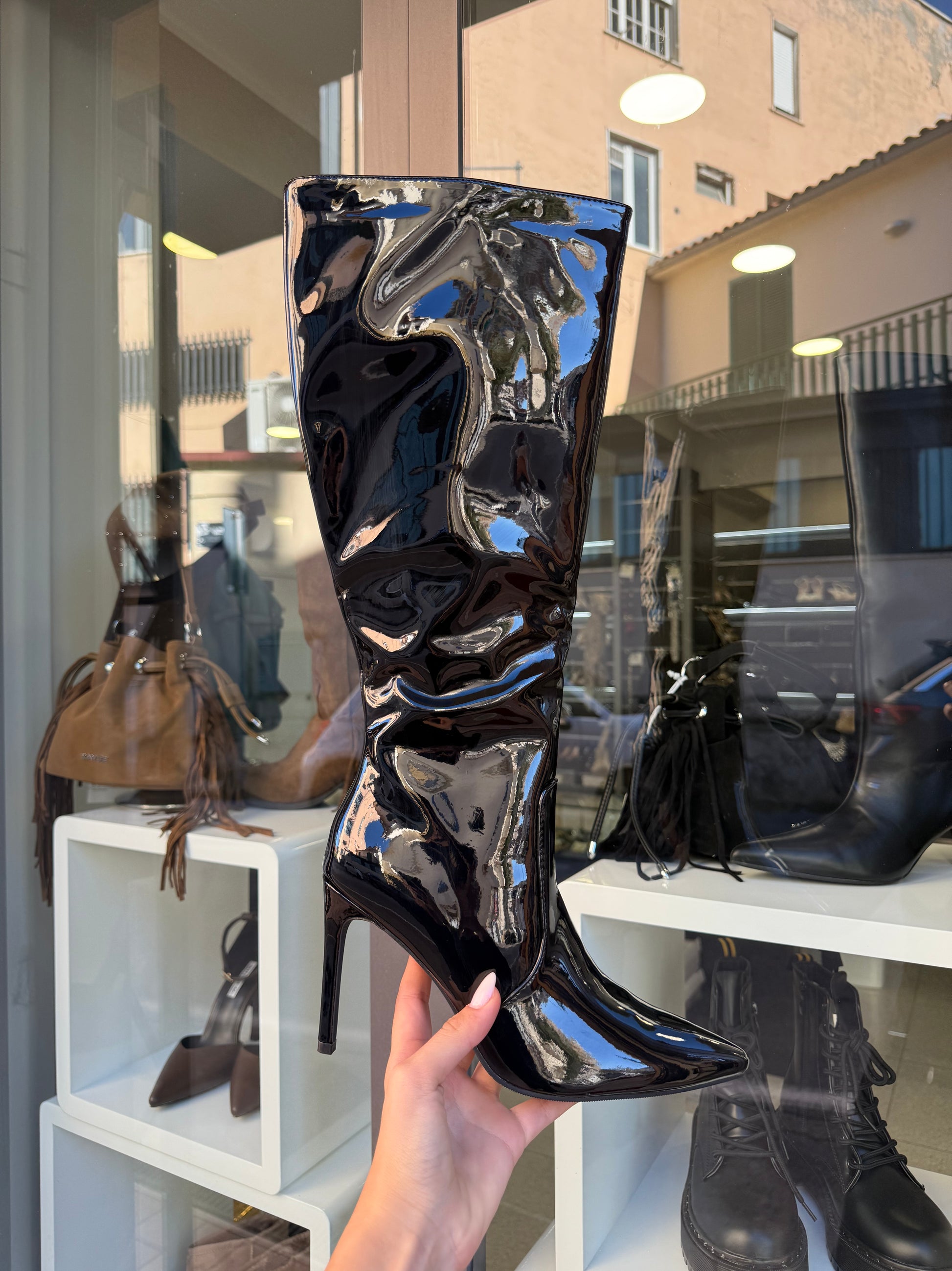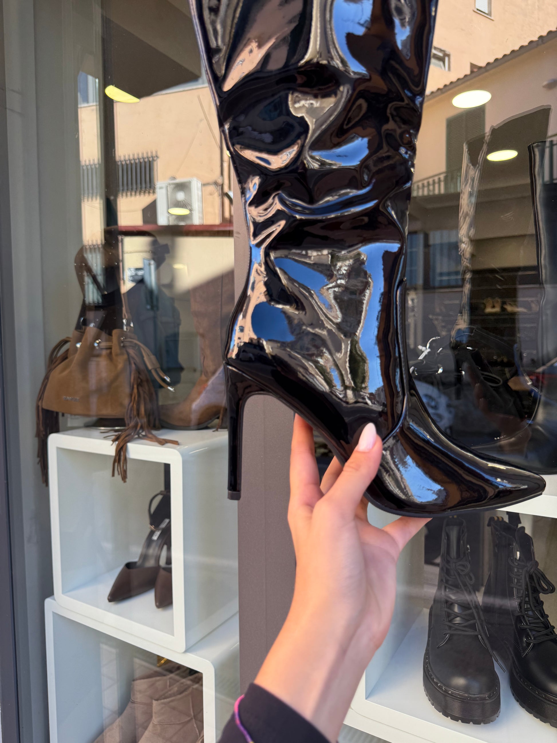 stivali in vernice neri