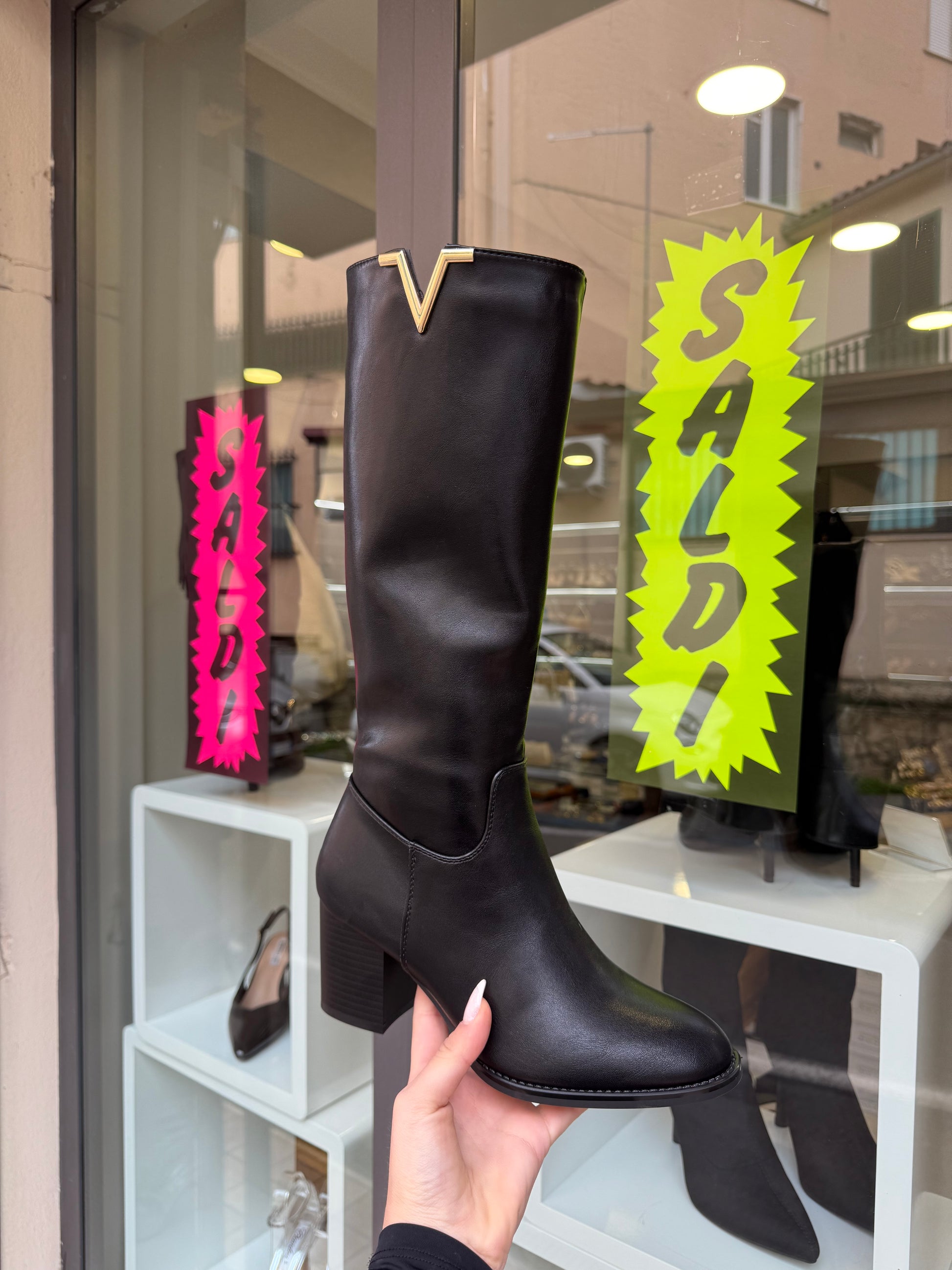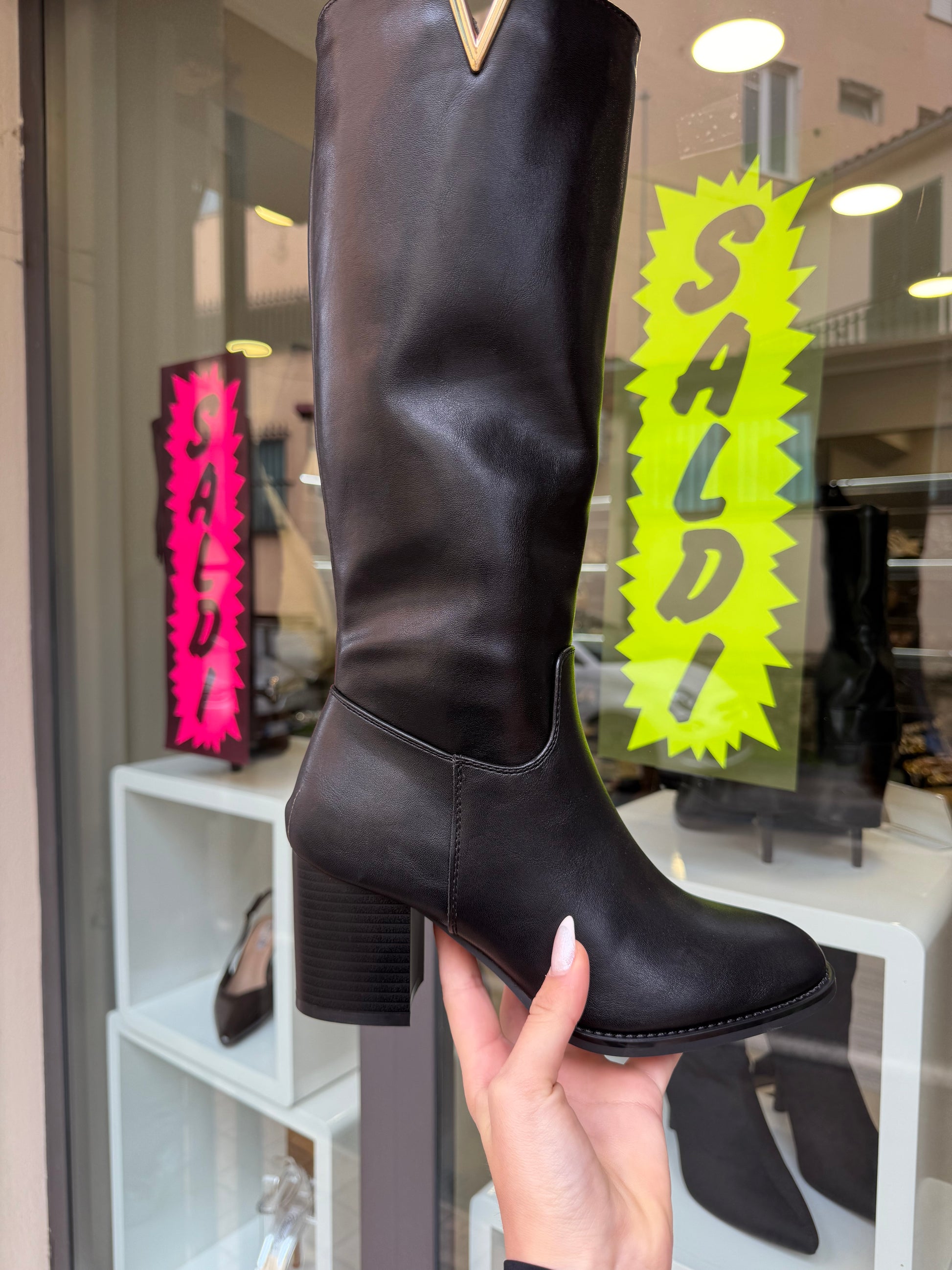 stivali “V” con tacco neri